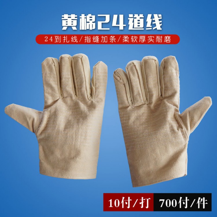 黃棉布24道線帆布手套